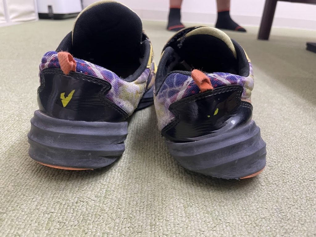 足は踵(かかと)から着地するので基本外側から擦り減るのが正常です。